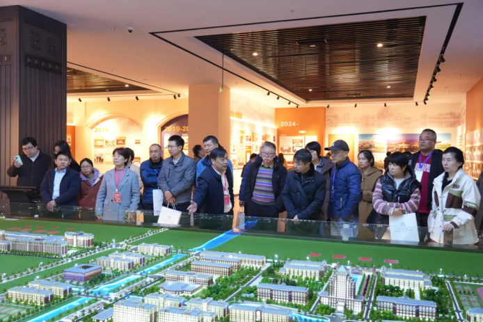会后,5357cc拉斯维加斯科技集团董事长张福德、总经理唐佩随队和与会人员一起参观了南通理工学院的数智展馆、张謇教育文化馆等地并合影留念。